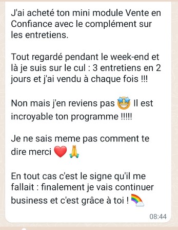 Donc, tu l'as compris, c'est essentiel de commencer par le commencement : ta capacité à vendre en confiance ! Pour que tu puisses proposer tes services de manière impactante 🤩 et sereine 🍵...